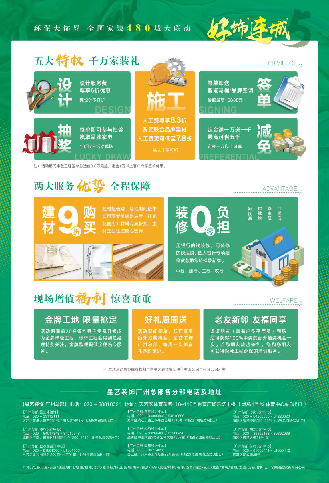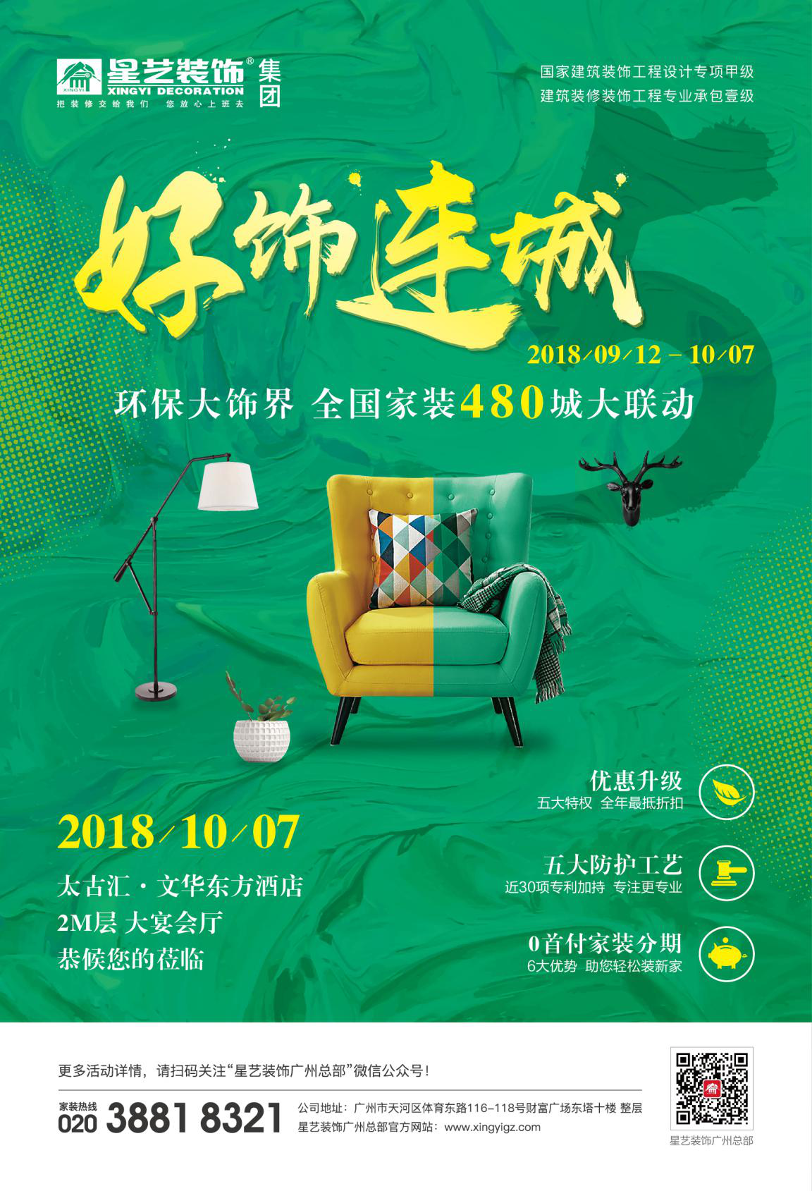 9月1日至10月7日,星藝裝飾好飾連城5,環保大飾界,全國家裝480城大聯動。您想要的年度裝修鉅惠,重磅來襲,10月7日文華東方酒店恭候您的蒞臨!