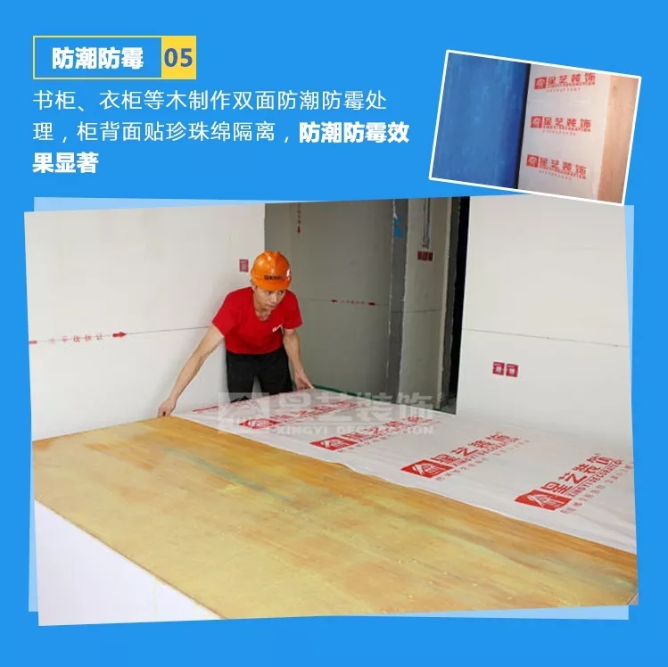 一個潮濕的環境,會引起人們生活家居諸多的不適,如家具發霉、生銹等,對經濟造成的損失。星藝的工地,衣柜等木制作雙面防潮防霉處理,柜背面貼珍珠綿隔離,更有效避免表面霉菌的滋生。