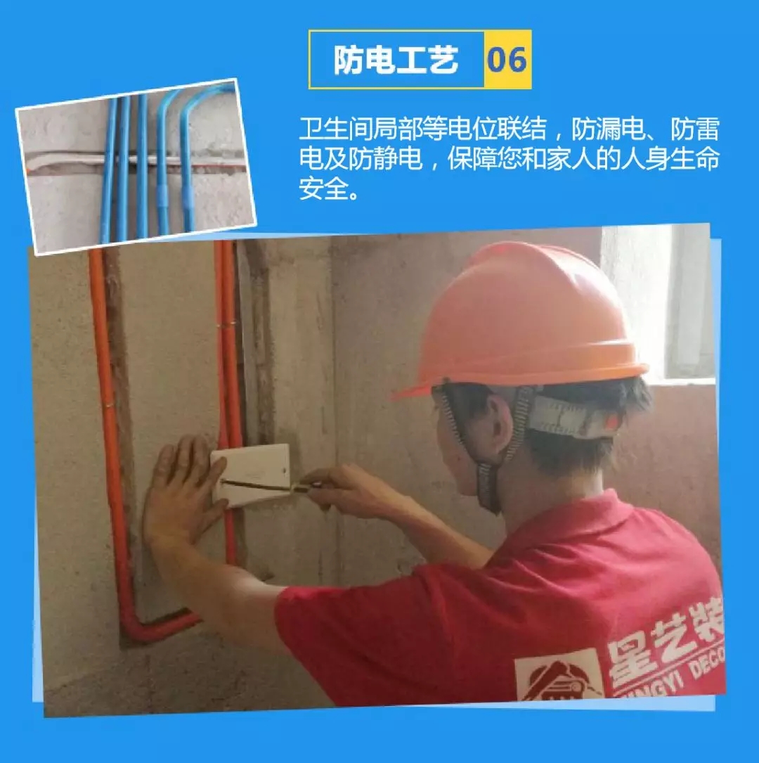 為了更好的規范電路工程,確保工程品質,及監理與業主對電工項目的檢查與驗收,星藝裝飾特創雙色電工套管,采用優質的阻燃型有色PVC管作強、弱電線保護管材。紅色——強電及照明用電專用,藍色——弱電項目專用。強、弱電線管交叉時,弱電線管應用錫箔紙作纏繞屏蔽處理,預防信號干擾。更多工藝細節,歡迎預約參觀星藝工地。