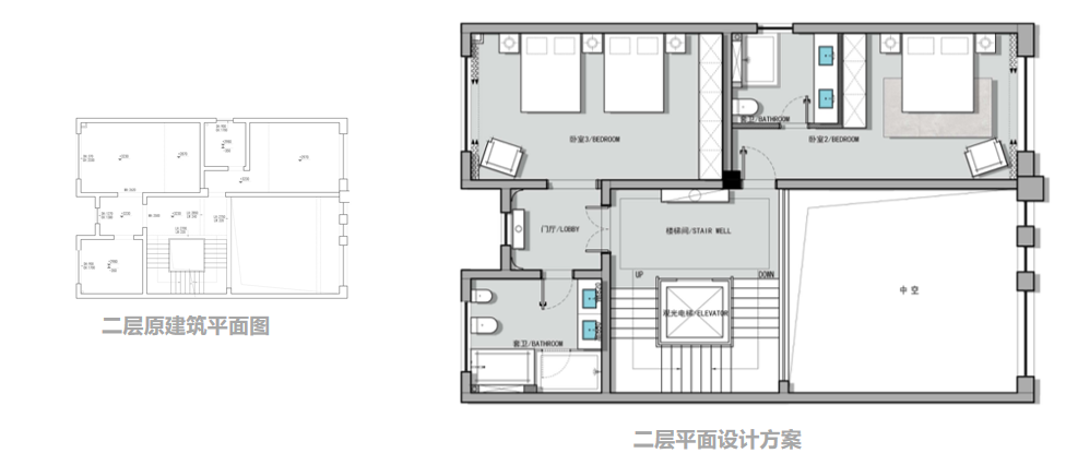 二樓的臥室設置兩張雙人床,平??梢宰鳛閭溆门P室,方便有客人或者親戚留宿。