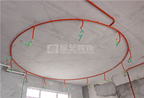 (6)天花燈位留線以天花實際標(biāo)高留長200mm,并卷成螺旋狀,